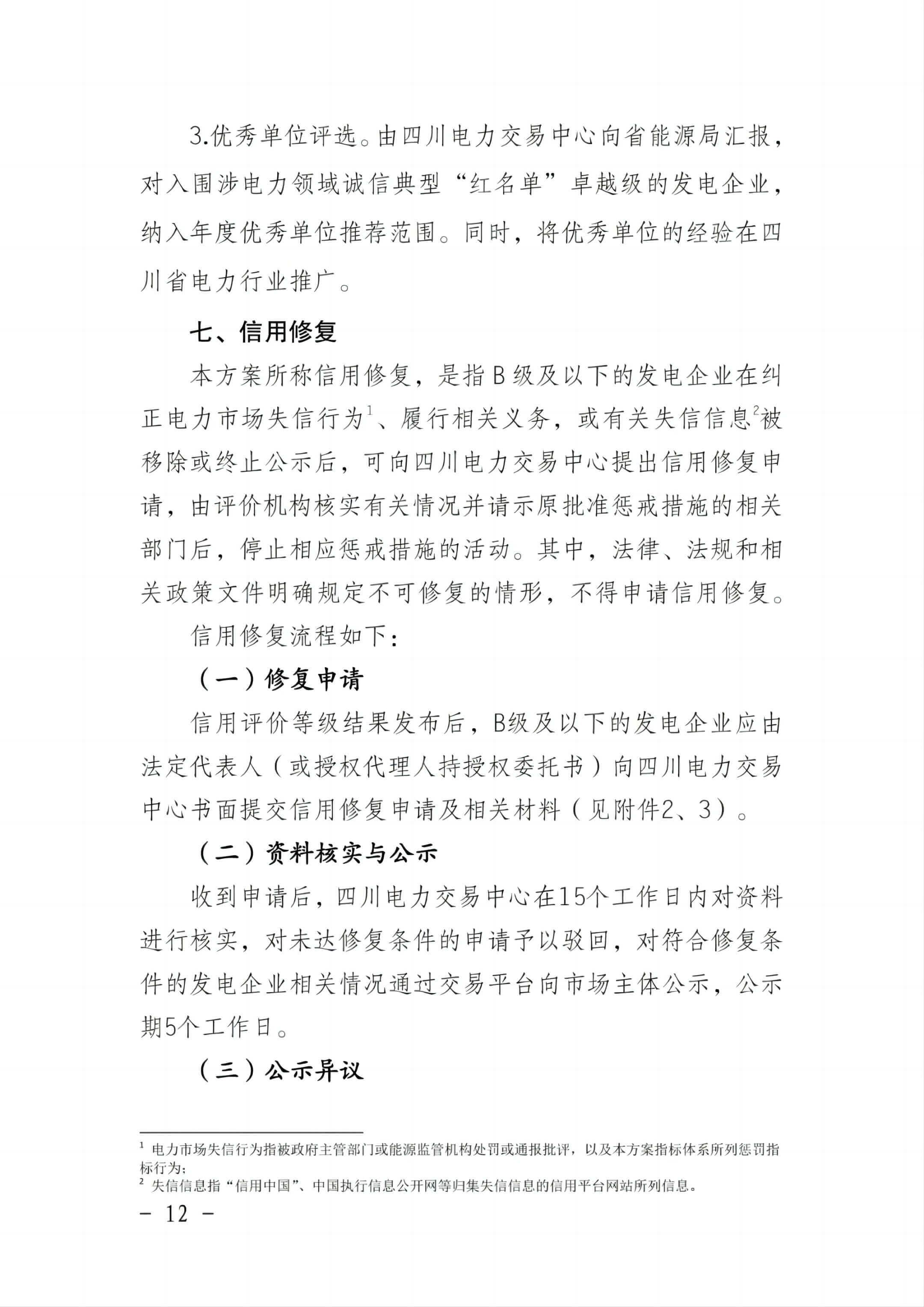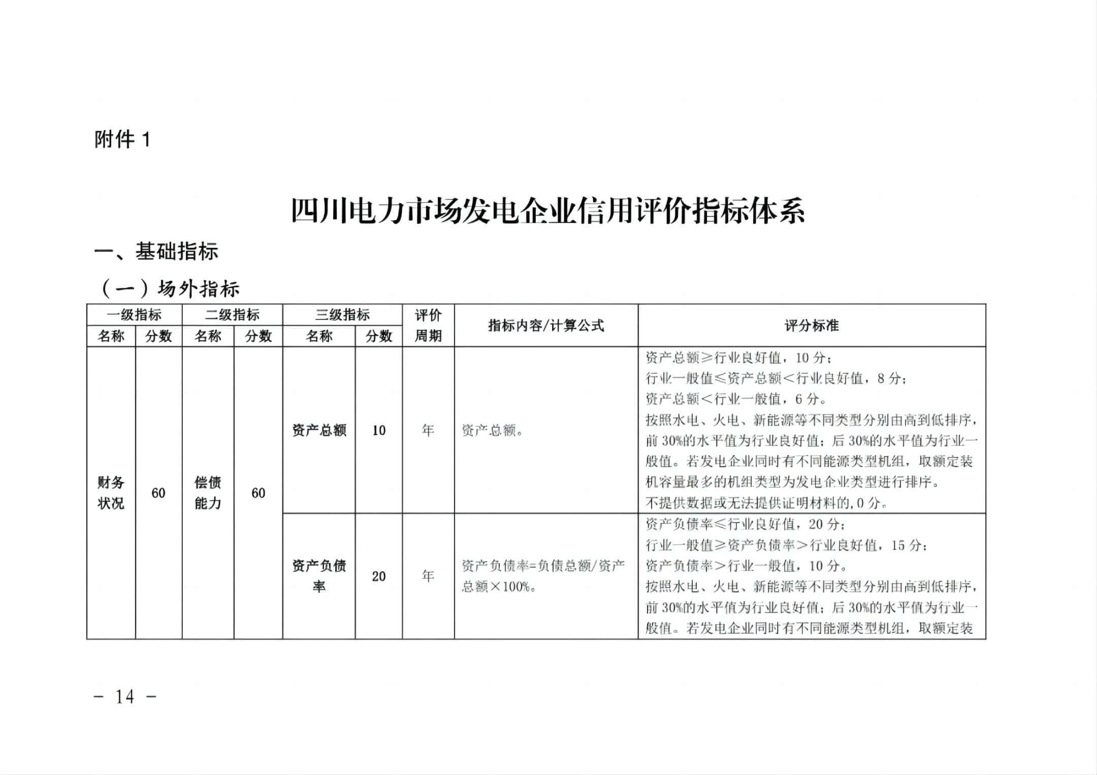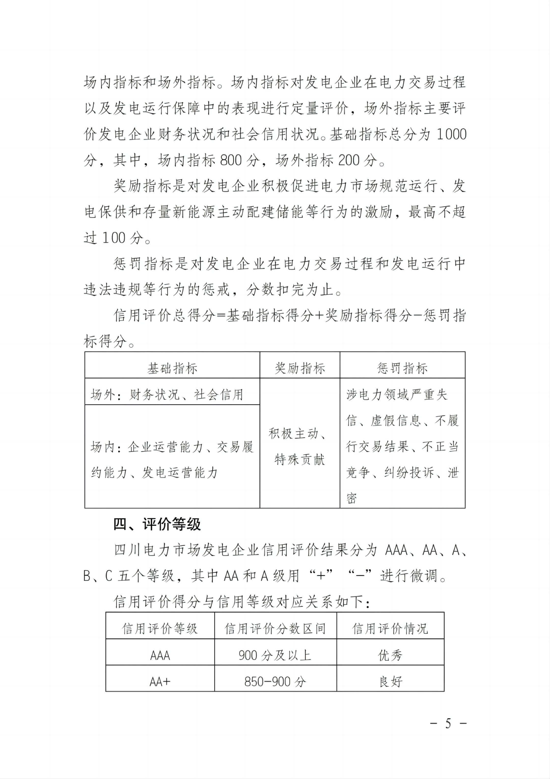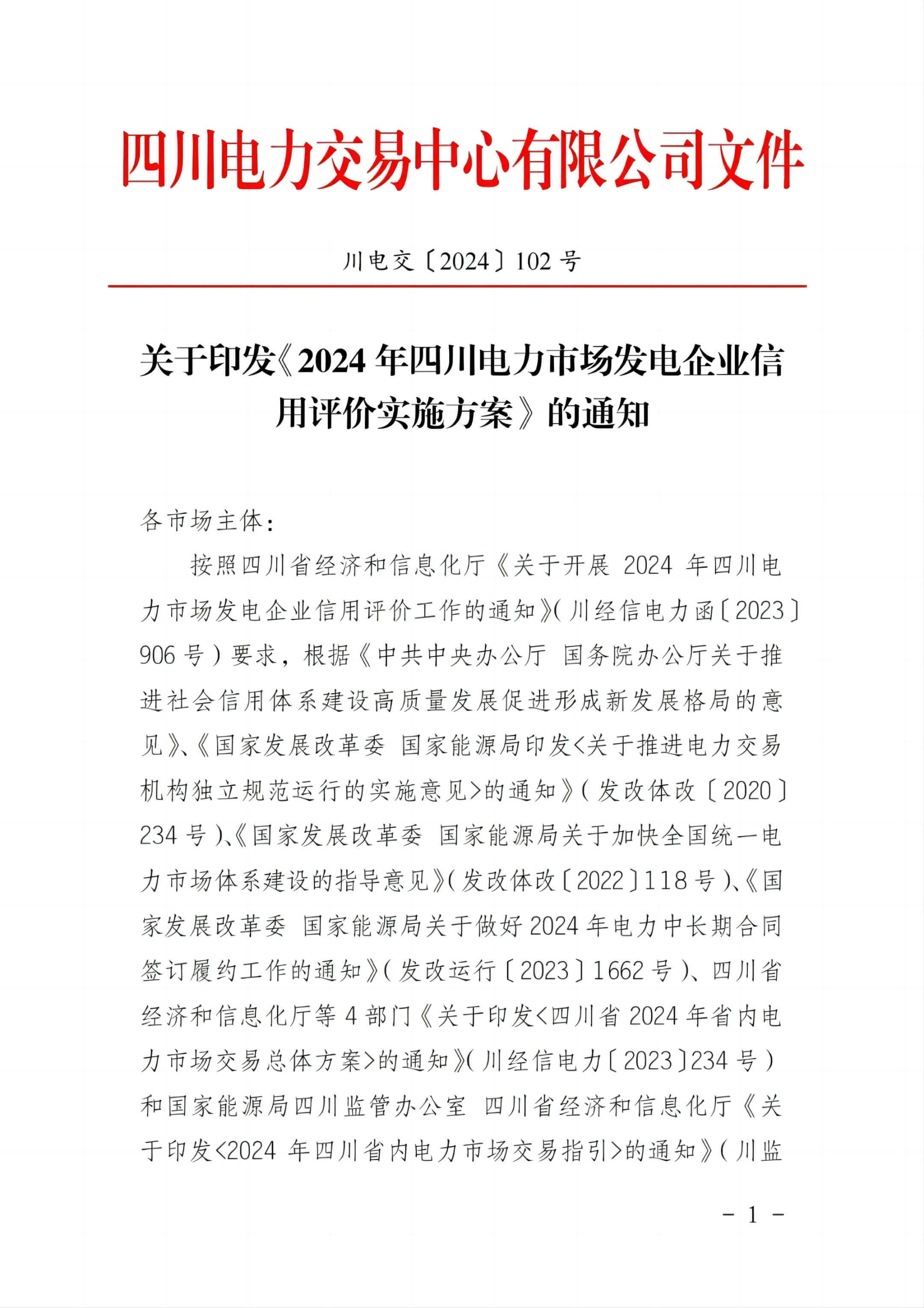 6月12日,四川电力交易中心发布关于印发《2024年四川电力市场发电企业信用评价实施方案》的通知。四川电力市场发电企业信用评价结果分为AAA、AA、A、B、C五个等级,其中AA和A级用“+”“-”进行微调。