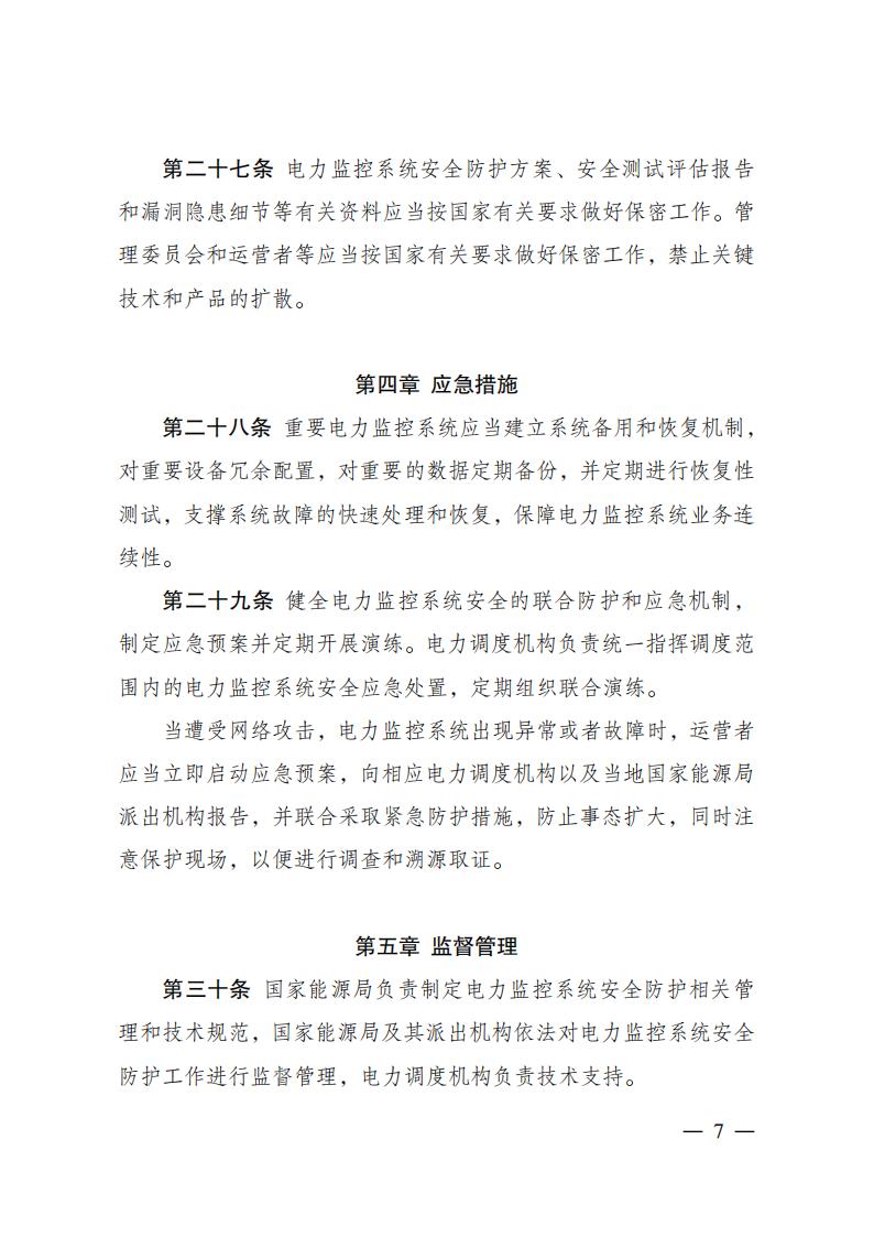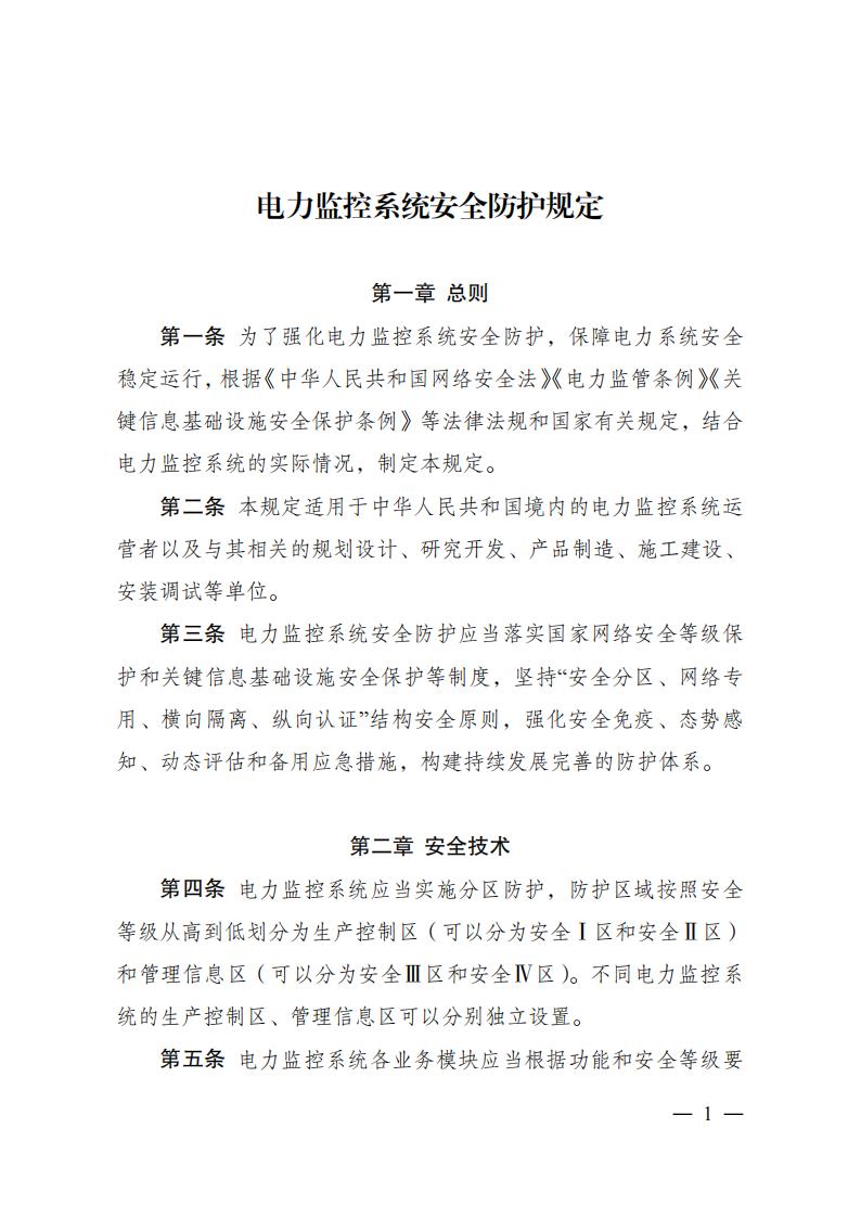 《电力监控系统安全防护规定》已经2024年11月25日第18次委务会议审议通过,现予公布,自2025年1月1日起施行。