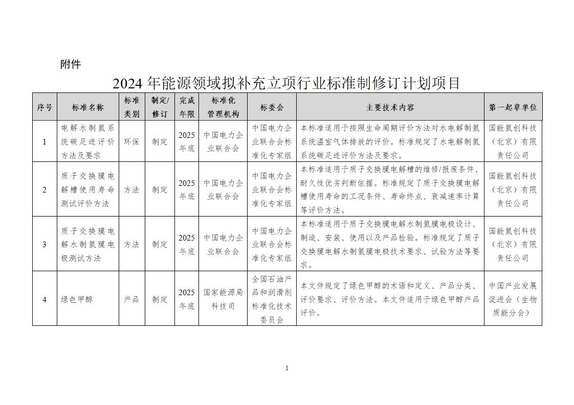 国家能源局综合司关于公开征求2024年能源领域拟补充立项行业标准制修订计划意见的通知
