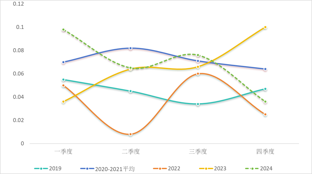 图2 2019—2024年全国全社会用电量季度增速
