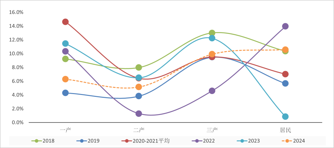 图3 2018—2024年分产业用电量增速情况