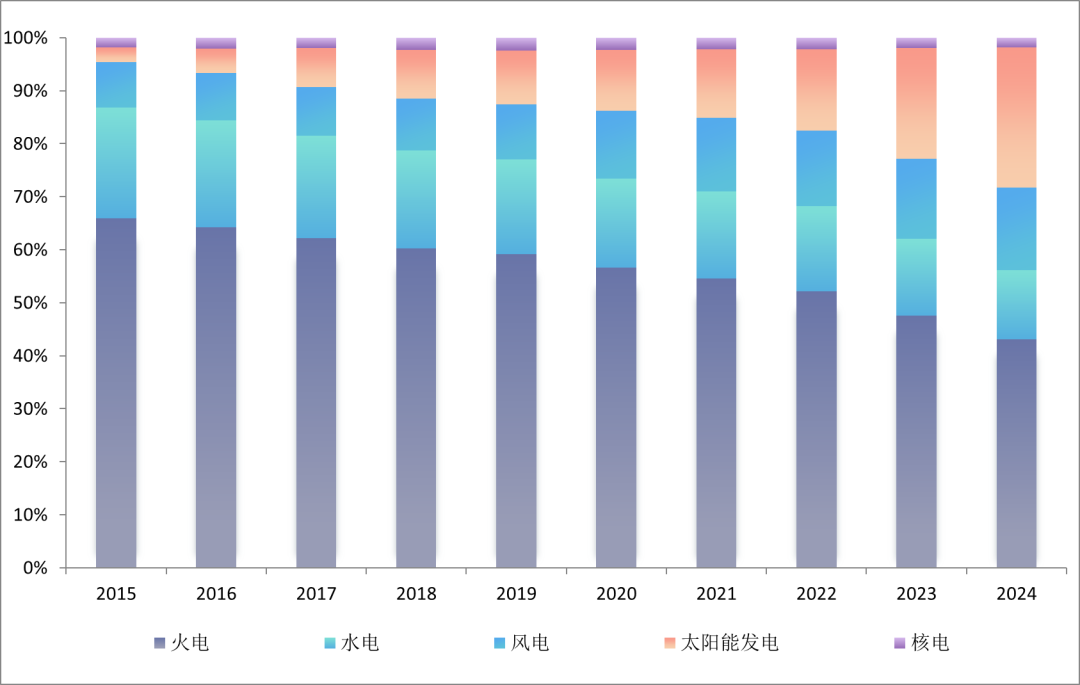 图6 2015—2024年全国电力装机结构