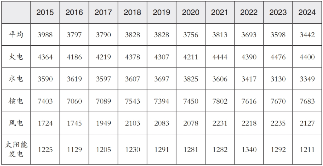 表2 2015—2024年发电设备利用小时数(单位:小时)