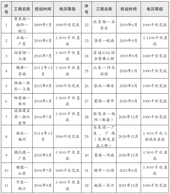 表4 我国已建成投运特高压工程